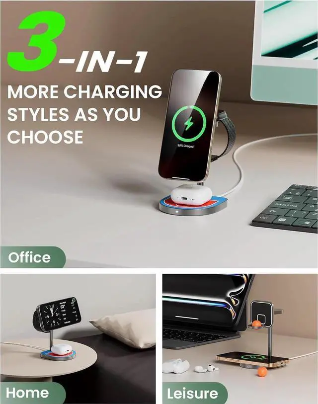 [Strong Magnetic Wireless Charging] Built-in high-quality magnets and 3 wide charging coils for precisely alignment and lock your iPhone in the optimal charging position. Made compatible with Mag Safe, it effortlessly charges your iPhone in both horizontal and vertical orientations. Find Your Perfect Charging Angle.
