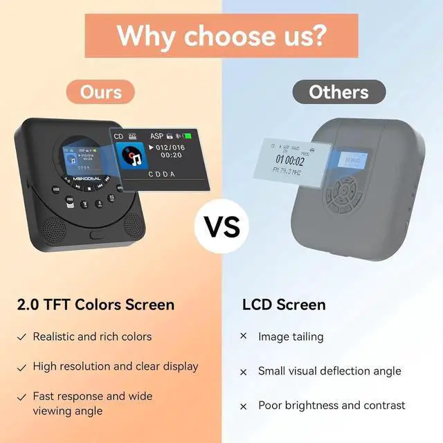 FM reception and transmission: Unlike other CD players, our portable cd player with bluetooth has both FM reception and transmission functions. Not only can you listen to your favorite channels at any time, but you can also pair with your car through FM frequency to achieve wireless connection and easily enjoy music in the car