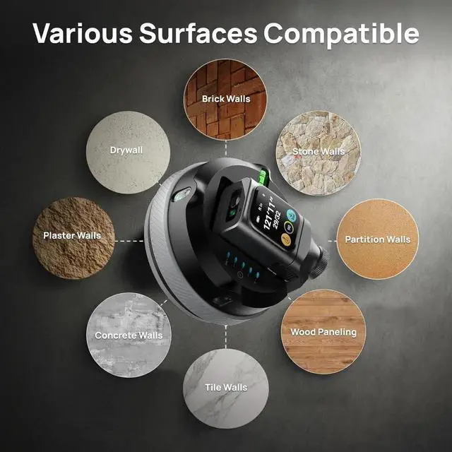 World's First Modular Level Tool with Simultaneous Leveling & Measuring-The 02 Anti-Gravity Laser Level emits both horizontal and vertical lasers for precise leveling, while the 00Green Laser Measuring Tool enables accurate distance measurement up to 164ft. Both tools can be used together or independently for maximum versatilityfalse55,000Pa Wall Suction Laser Level Tool- No Need for Tripods, Free up your hands.Ideal for picture hanging, shelf installation, cabinet mounting, wallpaper alignment, lighting setup, and DIY projects, it ensures precise positioning for home improvement, renovations, and construction tasks.Also suitable for outdoor use, with laser visibility up to 5m/16ft under ideal lighting conditionsfalse