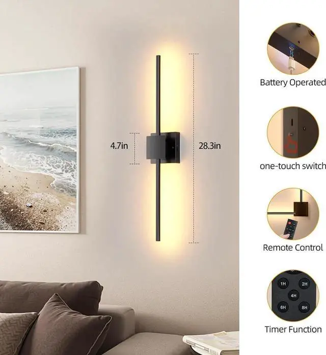 Multiple Use ScenariosThis 28.3 -inch battery wall sconce has a very attractive appearance. Its freely rotating tubes make it more decorative and interesting, which means it can adapt to more scenarios. Modern wall sconces can be used as picture lights, wall lights for living room, and wall lamps for bedroom. You can also use these lights as decorations for mirrors, screens, fireplaces, staircases, window curtains or ry modern corner to add a modern, elegant and unique vibe to your home.