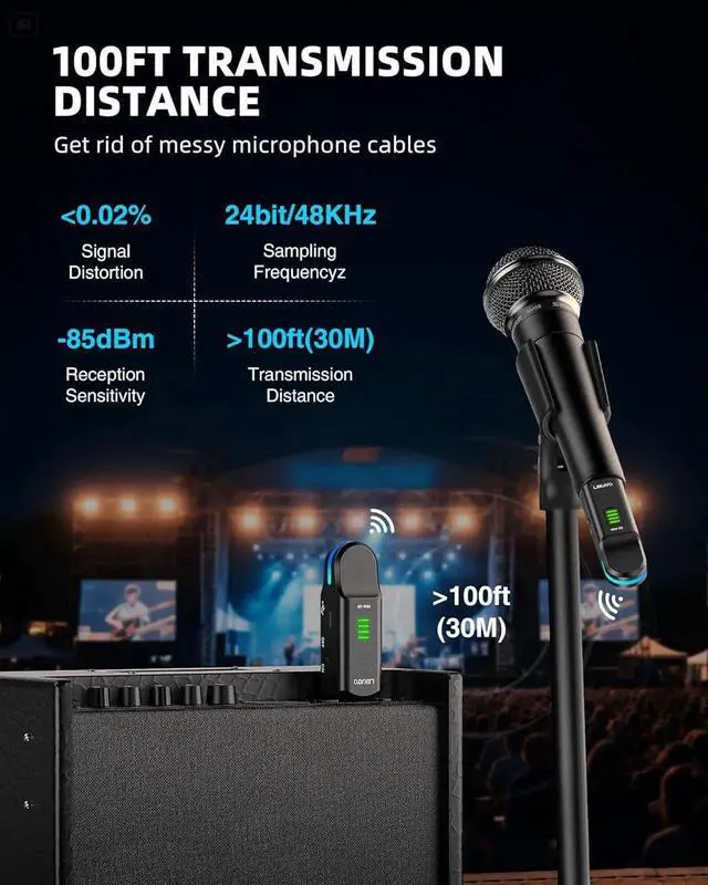 - 100FT Wireless Range: Strong anti-interference ability to ensure the stability and purity of sound reception within a transmission distance of 100 feet. Very suitable for small live performance, church, speech, meeting, family entertainment, weddin