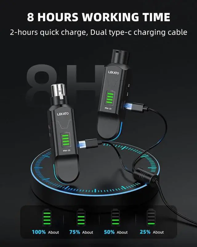 - 8H Working Time: Built-in rechargeable battery, support 2-hour quick charge, and use for 8 hours after fully charged. Real-time power monitoring, never worried about running out of battery unexpectly during your performance!