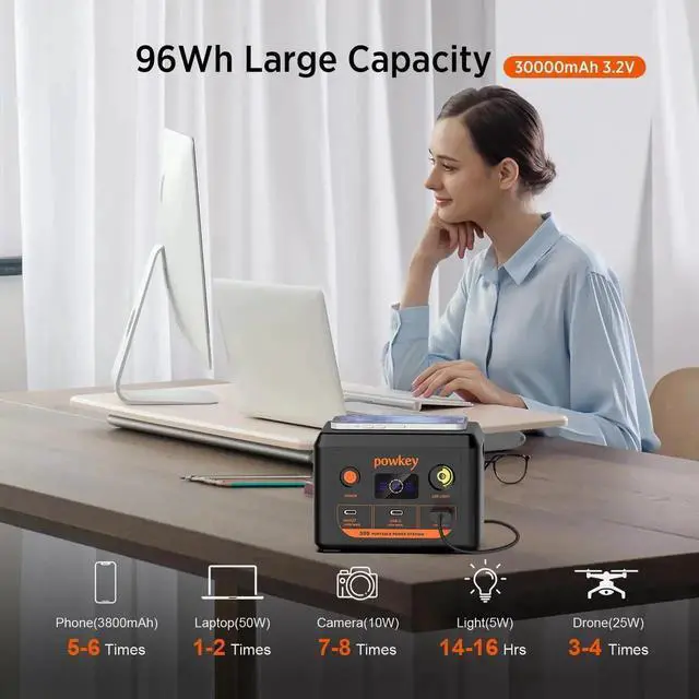 Durable & Safe The portable laptop charger comes with a 30, 000mAh/96Wh capacity LiFePO4 battery pack and 100W pure sine wave, Completely different from lithium batteries, power station LiFePO4 Batteries can be used and charged more than 3000 times, while the advanced BMS protection function can monitor voltage, current and temperature, enabling your power station to operate for a long time.