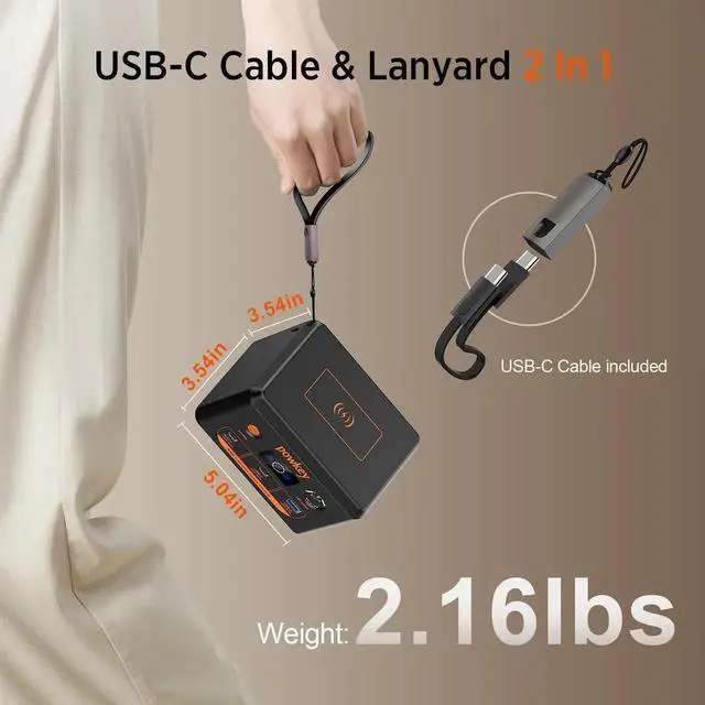 What You Get 1*100W portable charger, 1*USB-C charging cable (with detachable lanyard), 1*User manual, 12-month warranty and our enthusiastic customer service. (Tip: If the portable charger is not used for an extended period, it is recommended to charge the battery every three months. This will help extend the chargers lifespan. )