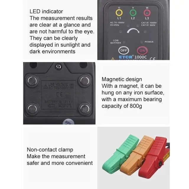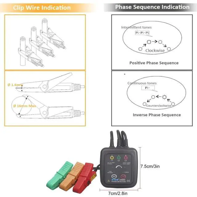 The dynamic sound and light indicates the positive or negative phase of the phase sequence of the three-phase power supply, which is clear at a.