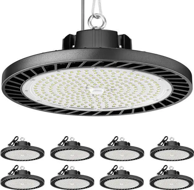 8 Pack LED High Bay Lights 200W, 30000LM 6500K UFO High Bay Led Shop Lights AC100-277V with Plug Industrial Warehouse Workshop Factory Barn Garage Area Lighting Fixture