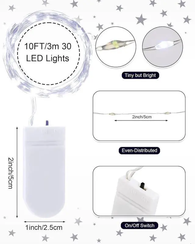 Battery Operated: each fairy lights string is equipped with a battery with on or off switches, sily slide the switch to turn off or on the lights and enjoy the beautiful scenery; It can last for about 48 rs; Batteries need to be replaced when the lights get dim, LED lights will last more with regular battery changes