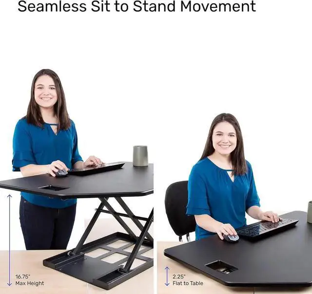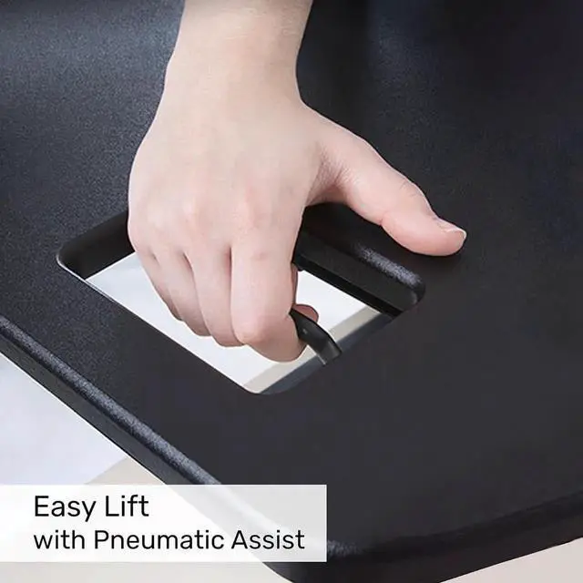 Smooth Sit to Stand Transitions: Easily move from sitting to standing in seconds. The built-in pneumatic lift raises the desk converter from 2.25" to 16.75", offering ergonomic support and flexible positioning throughout your workday.