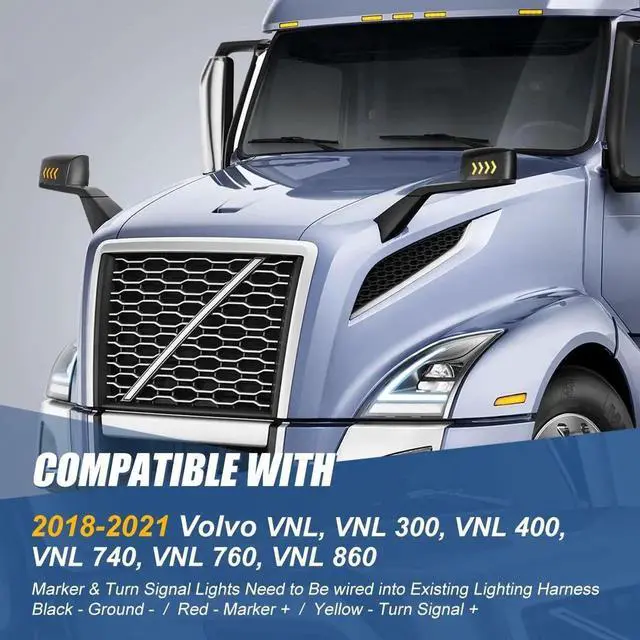 Vehicle Compatibility - These mirrors are compatible with Volvo VNL, VNL 300, VNL 400, VNL 740, VNL 760, VNL 860 2018-2021.