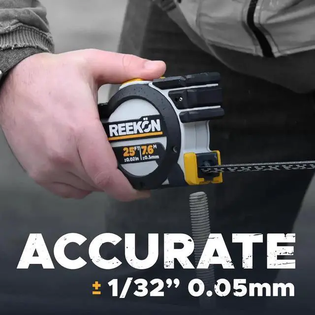 Accurate - The T1 Tomahawk contractor grade tape is self calibrating and accurate beyond 1/32 (0.5mm). Blades are fully replaceable if they become damaged or worn out.falseMeasuring List - Never forget a measurement with the side mounted e-paper display - shows previously saved measurements (up to 500) which can be viewed, organized, and deleted as needed.falseLaser Guide - An integrated, fine width, green laser projects and extends across from the front reference surface extending the ability to align and mark. Class 2 laser with power <1mW.false