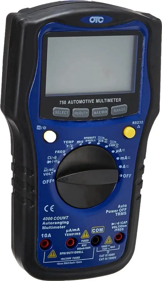 The 750 series Automotive Multimeter includes powerful Automotive test functions such as; Frequency, Duty Cycle, Diode and Continuity Tests, PLUS Automotive specific tests; True RMS, RPM, Dwell, Pulse Width, Temperature, Backlight, RS232, and Min/Max. It is CATIII so it is compatible Hybrid vehicle systems.