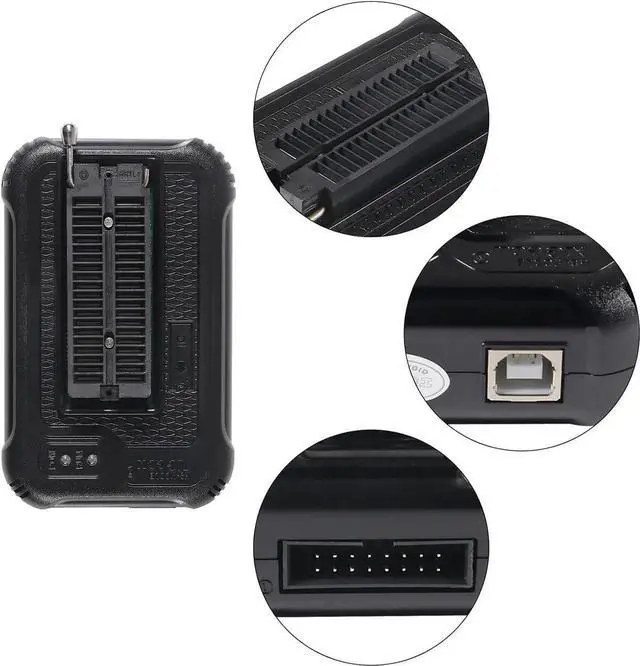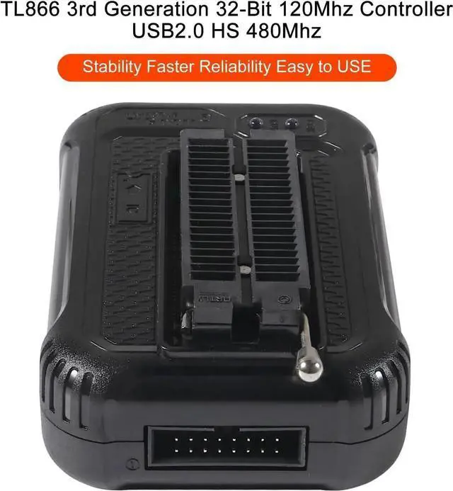 Description: With 40-pin industrial high-quality ZIF Socket (Pluggable/replaceable), newest model T48 (TL866-3G) programmer is the improvement of TL866 Plus programmer. Based on 32-bit MCU with 120MHZ and 4-layer PCB design, this professional T48 programmer support high-capacity NAND EMMC up to 256GB and programming speed is much higher. Suppport high-voltage chips, VPP Maximum up to 25V, that is what TL866 cannot achieve. Production of high-density SMD technology, a unied user interface, easy to use, fully functional, reliable program running of application software, ultra-small (size is almost the same as TL866), code-runs much faster, support multilanguage menu (English, Chinese, Russian, Polish, German, Spanish, Portuguese, Turkish, Czech, Italian), it can automatically identify the operating system to install and run under Windows XP, 2003, 2008, Vista Win7 WIN8 WIN10 WIN11. Overall, T48 offers signicantly improved performance and excellent value for money. T48 (TL866-3G) hardware
