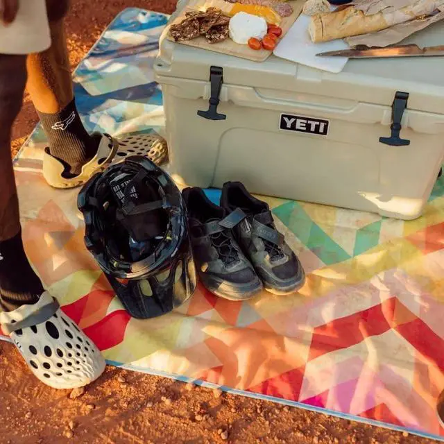 • Waterproof, portable ground mat with a soft microsuede top and rugged bottom for camping, hiking, beach days, picnics, concerts, and festivalsfalseStain and water-resistant polyester microsuede top resists dirt, sand, and spills for easy cleaning at the beach, campsite, park, or outdoor eventfalseDurable 5K TPU laminate bottom provides a waterproof barrier against wet grass, snow, and rough terrain for reliable outdoor usefalse