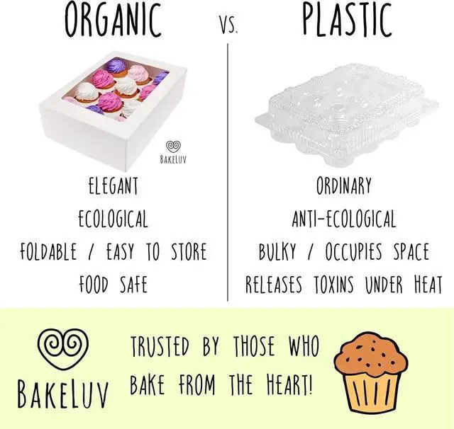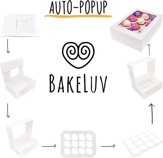 ELEGANT DESIGN & EASY ASSEMBLY: Cupcake Carrier feature a beautiful clear window design to showcase your delectable treats. Auto-Popup means assembly is not required; simply unfold the box and it will pup-up into shape so you can pack your delicious treats; no tools, glue or special skills are required saving you precious time for baking and sharing!