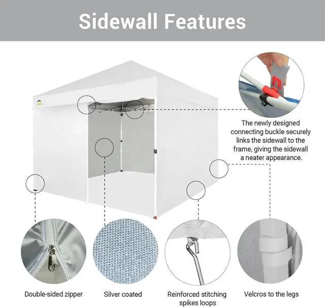 [LARGE SPACE]: The canopy has a 10' x 10' footprint and provides 100 square feet of shade. It has an interior height of over 9'5'' and a clearance of over 6' under the valance, providing plenty of standing room. The cool shade comfortably accommodates up to 10 seated people.