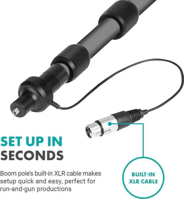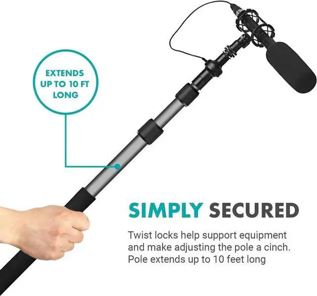 • ADJUSTABLE BOOM POLE: Lightweight boom pole features telescopic locks that extend out to 9.8 feet long