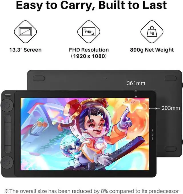 Kamvas 13 (Gen 3) Drawing Tablet with Screen, 13.3-inch Full-Laminated Art Tablet with Anti-Sparkle Canvas Glass, 99% sRGB, PenTech 4.0, 16384 Pen Pressure, Dual Dials for Digital Art, Black