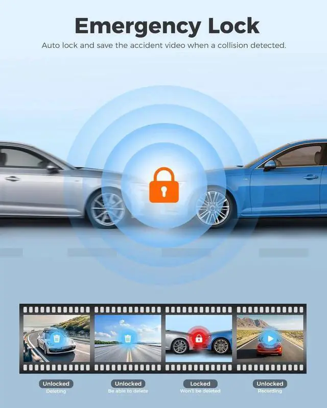 4'' Touch Screen Dashcam: You could easily access all features and settings of the driving recorder on user-friendly touch screen.