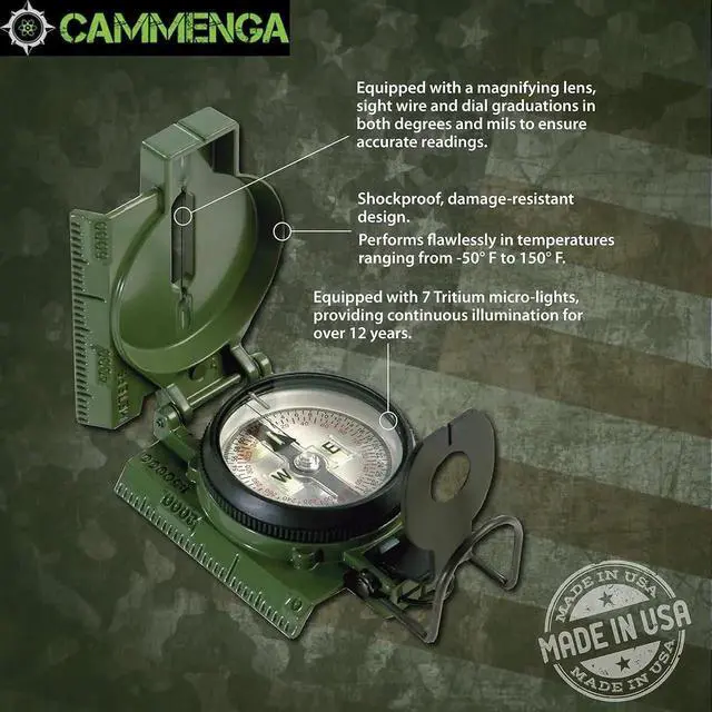 - BUILT TO LAST - Precision-engineered to the highest military standards. Cammenga compass is built for those demanding excellence & reliability. Made in the USA with a rugged aluminum frame, it ensures years of dependable us