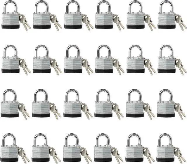 Includes: 24 padlocks, 48 keys; All keys open all locks