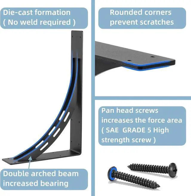 powder coating finished & Applic place Matte black coated finish, dur and sturdiness. bracket comes with traditional matte black, It fits in perfectly in your farmhouse kitchen, garage, basement storage room, and backyard.