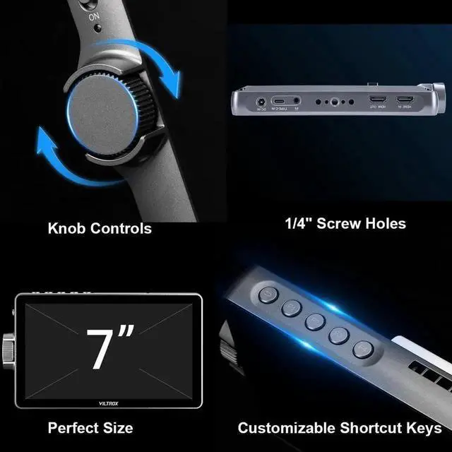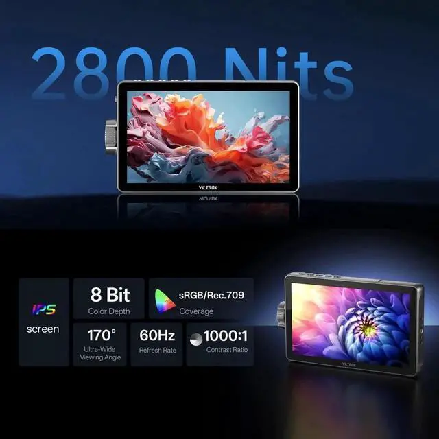 7 Inch Touch Screen Monitor DC-A1 camera field monitor features a brightness of 2800 nit,a Full HD resolution of 1920*1080,a contrast ratio of 1000:1,and a 16:9 aspect ratio.It is a touchscreen monitor for wireless camera control.It has a built-in wireless module for real-time video eye focus function