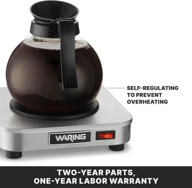 Always have a fresh pot of coffee piping hot and ready to pour with this portable and reliable warmer. A simple press of the rocker switch generates 70W of power to maintain just the right temperature as the self-regulating warmer ensures no overheating. Designed to t easily on any countertop with nonskid feet for stability, this durable and lightweight burner is a must for busy restaurants, cafes, diners, and catered events. Stainless steel construction wipes clean in seconds, making this BREW essential as easy to clean as it is to use.