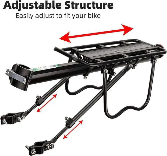 - Firm&Durable: Three-point fixation is more stable, adjustable support rod for easy length adjustment, allows you adjust the rod length to fit your mountain bike frame, perfect as a bike luggage rack and for carrying equipment on your travel and commuting.