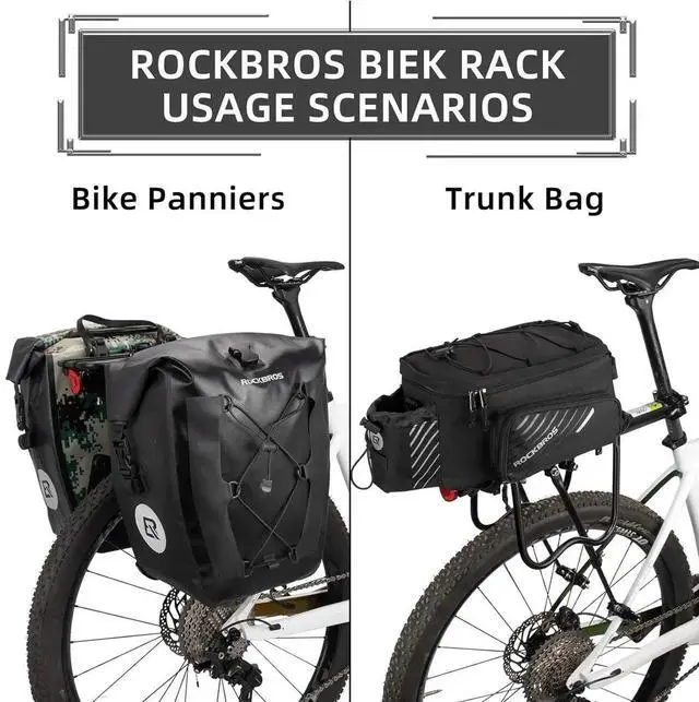 High Quality Aluminum Alloy: ROCK BROS bike cargo rack is made of high strength aluminum alloy material with stainless steel screws, helps you ride freely in rainy days or bad weather. The rear bike rack has strong load-bearing of MOST 165lb capacity, suitable for daily use and long distance cycling.