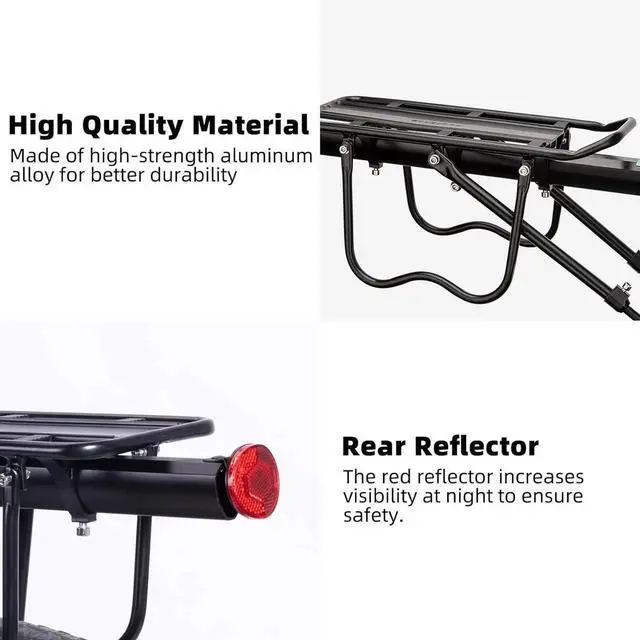 - Easy To Install: Adjustable quick release bike rear rack clamp for installation and remove simply, with tools, installation instructions and video, you can install the bike luggage cargo rack easily.