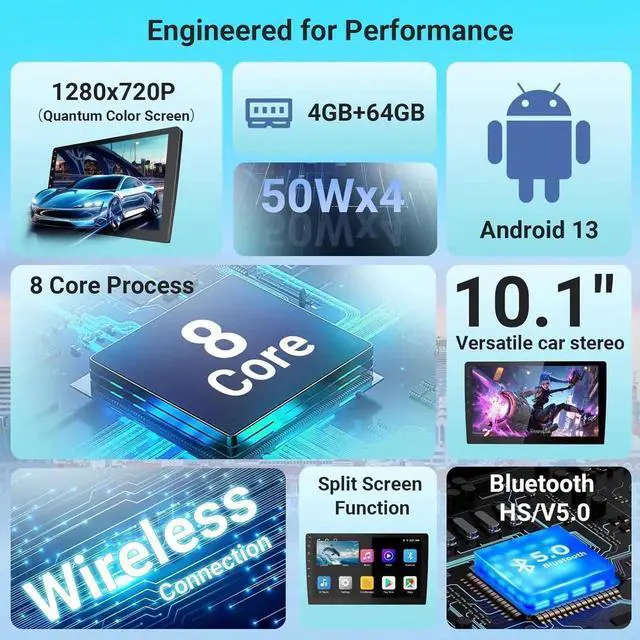 - Powerful 50W x 4 Output & GPS PrecisionDelivers robust sound for CarPlay entertainment, while built-in GPS and network hotspot support ensure accurate, real-time navigation overlays and traffic updates. Stay connected with Bluetooth 5.0 for hands-free calls, music sharing, and internet tethering,