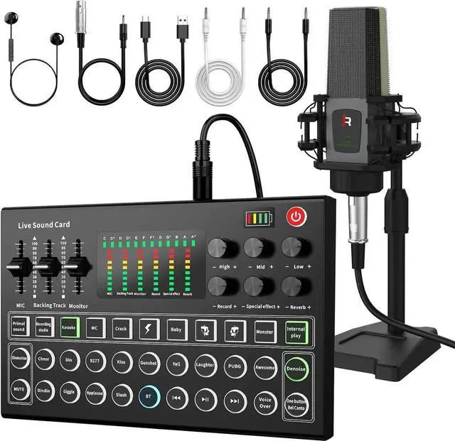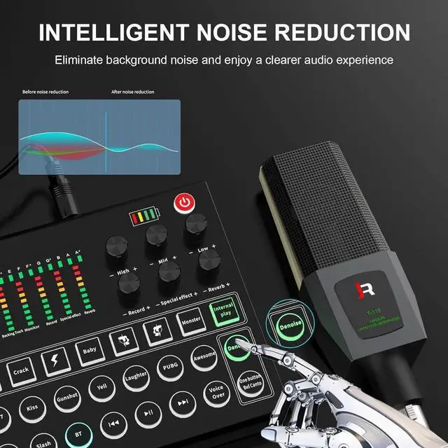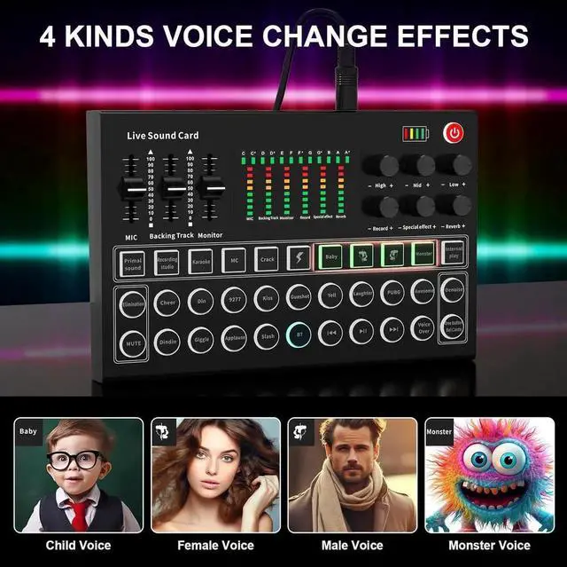 - Immersive special effects: DJ live mixer, with a variety of functions for live broadcast, 10 kinds of special environmental effects such as applause and laughter. This sound card can create an atmosphere during the live broadcast and bring a better experience to the host