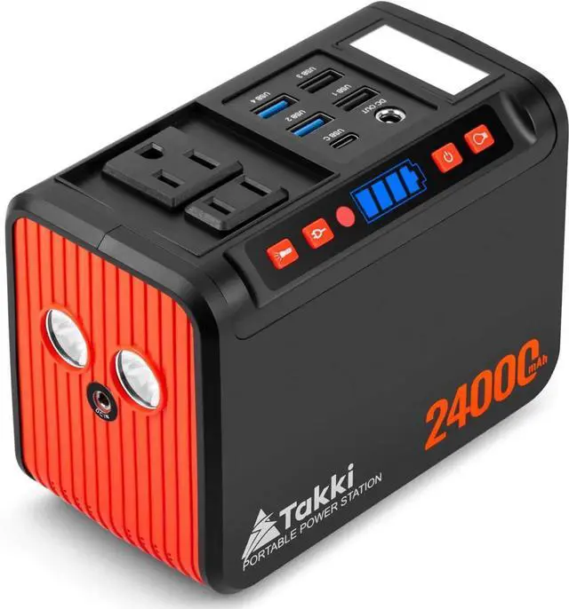 OUTPUT PORTS: The camping essentials power supply has 8 outputs including 2x 80W/110V AC output ports and multiple USB ports. Portable charger power bank can charge for portable TV, laptop, radio, mini car refrigerator, small fan, CPAP within 80W, and cell phones, iPads, tablet, Cameras, Drones, LED lights, etc. When fully charged, it can continuously power the 40W mini car refrigerator for more than 2 hours.