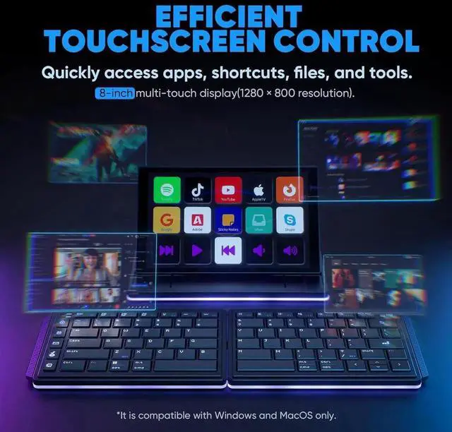 Integrated 8" Multi-Touch Display: Work smarter with a vibrant 1280x800 touchscreen that serves as your control hub; Access shortcuts, manage tools, and display essential apps like calendars and chats, making multitasking easier and more efficient