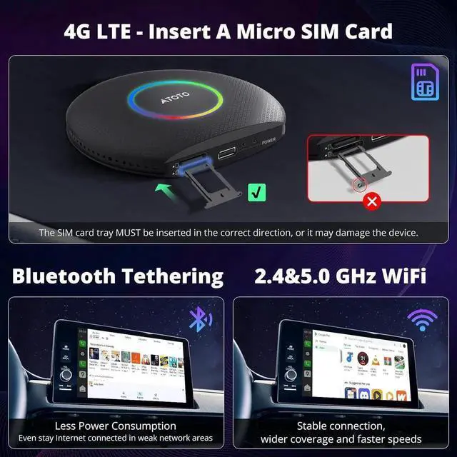 Enhanced Android System: Add an external Android OS to your car stereo, supporting internet access via Wi-Fi, Bluetooth tethering, and built-in 4G LTE (recommended IoT SIM)