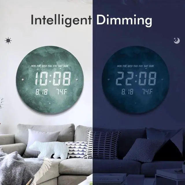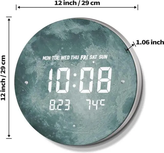 LED Electronic Large Digital Display: This large LED digital wall clock has larger numbers than traditional wall clocks, making it easier for you to read clearly. The digital wall clock can be switched to display 12 or 24-hour format as well as / temperature units, depending on your reading habits