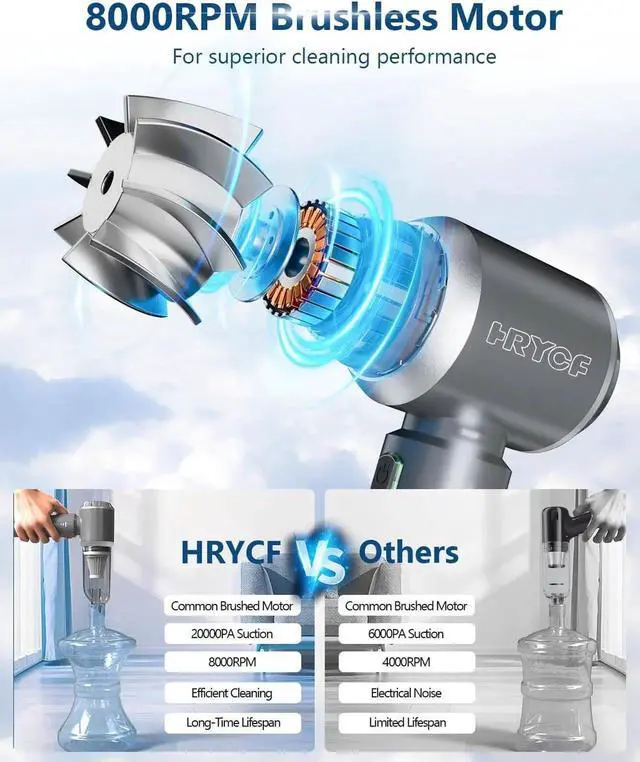 Easy to Use & Long Runtime portable vacuum for car is user-friendly with a simple long press to power on and a single click to adjust the power level. Three power levels handle various debris types with ease. The 6000mAh battery provides up to 40 minutes of runtime, even lasting 15 minutes at the maximum 20, 000PA suction setting