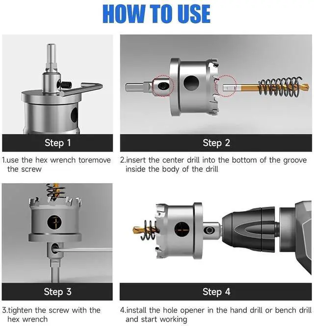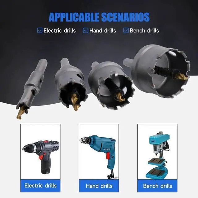 Wide Application: Our Carbide Hole Saw Kit works with handheld electric drills and CNC drilling machines, allowing you to drill precise holes and quickly cut through hard metals, stainless steel, aluminum, iron, brass, plastic, wood and more. Perfect for demanding cutting tasks.