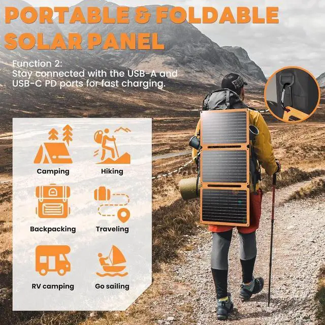 Ultra-Portable Design: Lightweight and compact, our foldable solar panel weighs just 1.2 kg and packs down to 13.6 x 9.7 x 2.2 inch. Our 30W mini solar panel stands out for its exceptional versatility, featuring three cable optionsAlligator Clip, Terminal Rings, and CIG Socket. These cables allow you to power batteries and devices effortlessly. Also equipped with Suction Cups & D-ring Clips, its easy to install on car windows or hang wherever needed, FieryRed portable solar panel ensures easy portability and flexible placement wherever you go! - 2 IN 1 Solar Battery Trickle Charger & Maintainer: FieryRed solar panel is designed to charge and maintain 12V rechargeable batteries. Ideal for infrequently used vehicles, boats, outdoor electronics, lawnmowers etc. It ensures instant device startup and protects batteries from long-term discharge. The control box of our 30W foldable solar panel supports LiFePO4, Lead Acid, AGM, Lion and Calcium batteries via its DC Port, meeting all your energy needs. Stay connected with the USB-A and USB-C PD ports for fast charging, also you use the DC port to channel external battery power to USB devices for reliable charging.