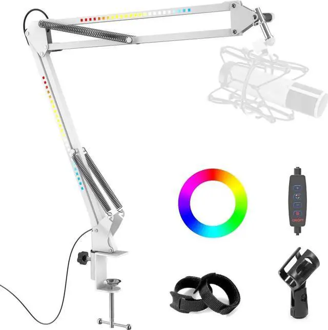 RGB Boom Arm, Adjustable Mic Stand with Desk Mount Clamp and Mic Clip