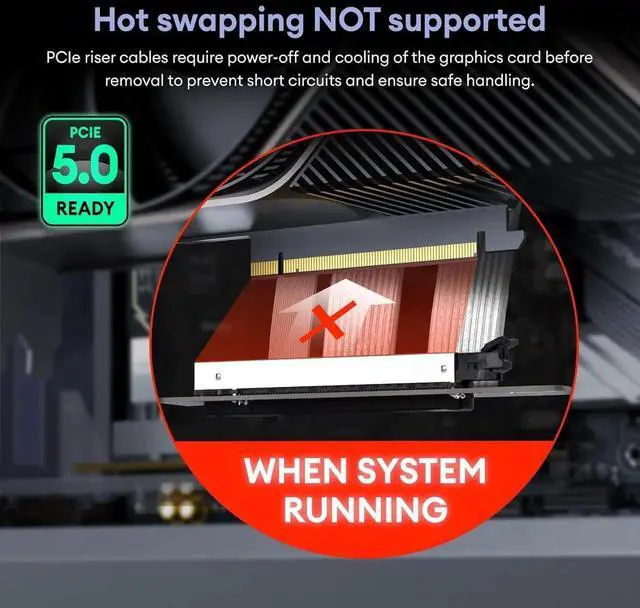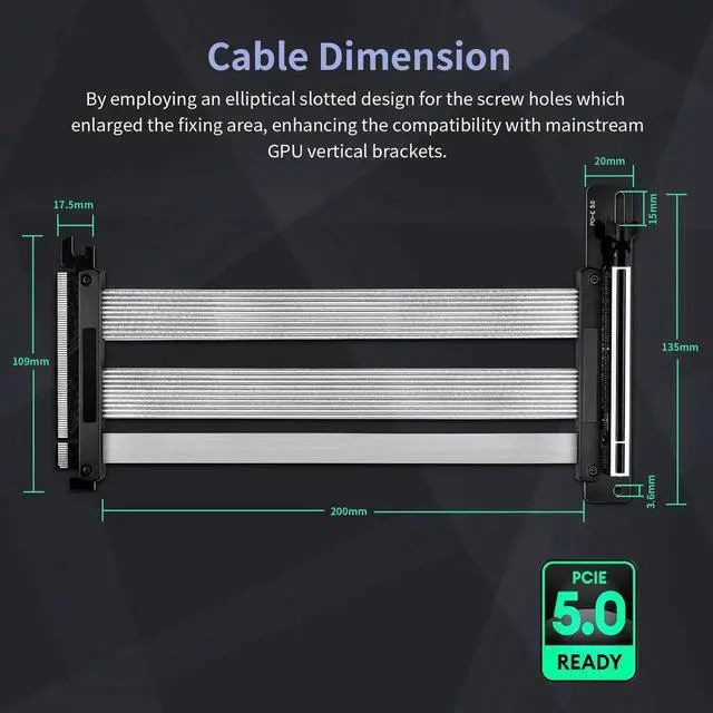 • Fully replaces PCI-E Gen 4 and Gen 3 riser cable: This Graphics Card Extension Cable enabling vertical GPU display to shase your hardware without sacricing Gen 5 performance. Improves air circulation, prolongs GPU lifespan, and accommodates a wide range of GPUs. Ideal for users seeking better aesthetics and efcient cooling