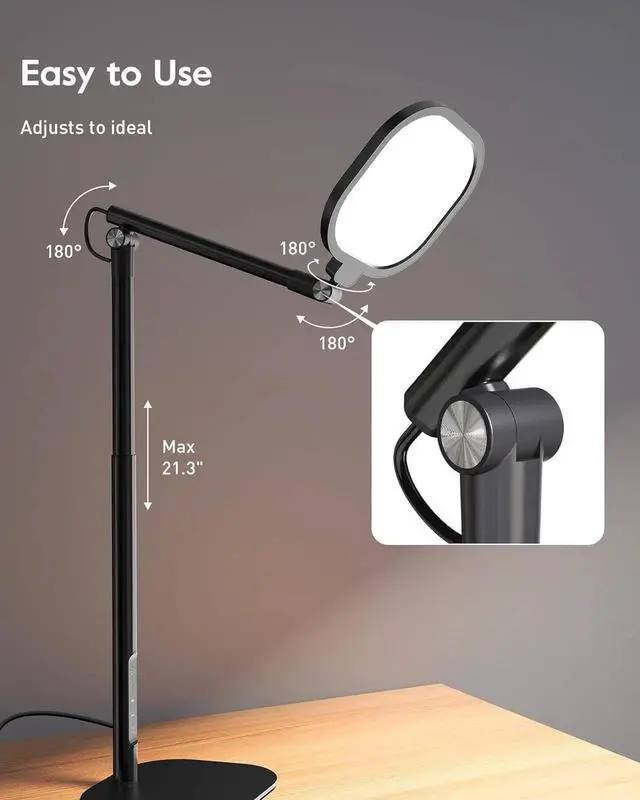 Effortless InstallationFully pre-assembledjust plug it in and enjoy instant lighting. No tools, no delays, no hassle. Perfect Lighting for Every Moment of Your Day Start your day with bright, glare-free lighting that ensures you look professional and clear on every video callperfect for video conference lighting. Maintain focus and productivity with adjustable, natural lighting that adapts to your work tasksideal as a desk lights for home office. Unwind with soft, warm light that soothes your eyes during evening reading or relaxation.