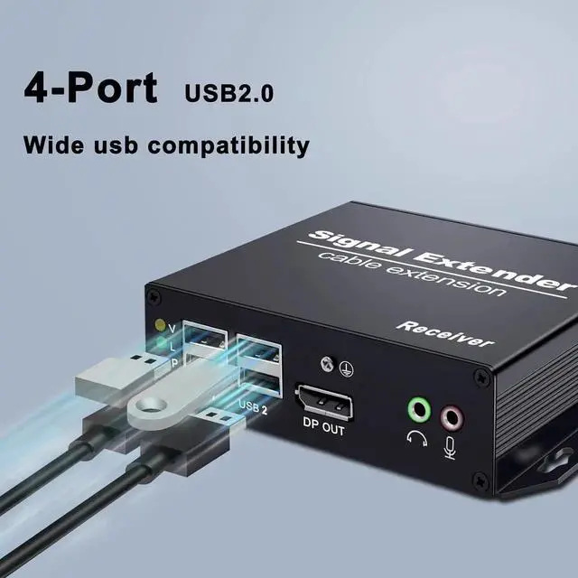 4 USB 2.0 Ports: Remote Access & Charging Hub Expand your workspace with 4 dedicated USB 2.0 ports (480Mbps) the highest density in its class. Remotely connect keyboards, touchscreens, storage drives, or charge phones/tablets 20KM away