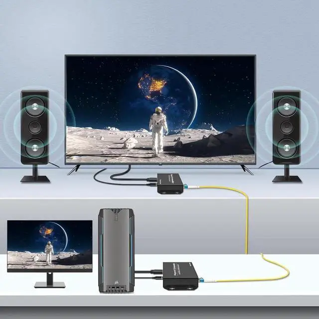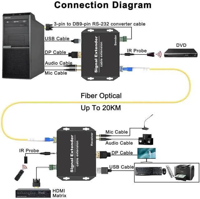 Fiber Optic 20KM 4K@30Hz Zero Latency Experience zero-latency 4K@30Hz DisplayPort transmission over single-mode fiber up to 20KM/12.4 miles 66x farther than copper cables! Ideal for mission-critical scenarios like data centers, industrial control rooms, and medical imaging systems. Unlike competitors limited to 300m with multi-mode fiber, our fiber solution ensures military-grade anti-interference even in high-EMI environments