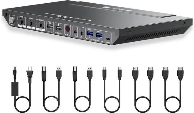 Important NotesMac Os doesnt support USB-C MST (multi-stream transport), so two duplicate contents will be displayed. Additionally, to enable hotkey switching, the keyboard must be connected to the devices USB 1.1 port.Package Include1x4K KVM Switch,1xPower Adapter (DC 20V 6A),1xIR Remote, 2xUSB 3.0 Type-A to Type-B Cable, 1xUSB 3.2 Type-C to Type-C Cable, 2xHDMI Cable, 1xUser Manual.