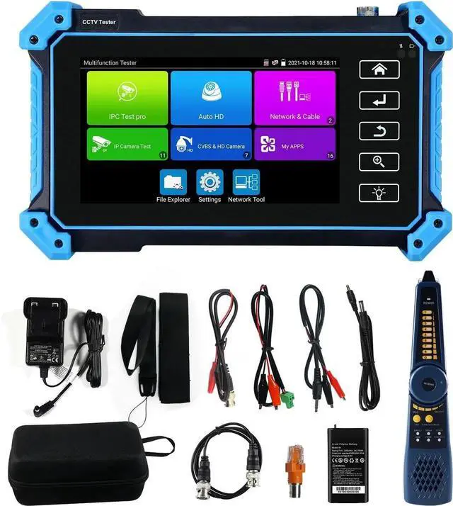 [ TVI CVI AHD Camera Tester ] CCTV monitor tester supports 8MP TVI / CVI / AHD camera testing and UTC control, and supports calling OSD menu. Auto HD -recognize the resolution and image display of Analog and HD cameras. Support coaxial PTZ and call OSD menu. Support CVBS and 8MP TVI/CVI/AHD cameras. Select relative function on the right side toolbar to operate, functions including ''Photos'', ''Snapshot'', ''Record'', ''Playback'', ''PTZ'', ''Set''. Multiple preview APP supports synchronized preview of multiple cameras