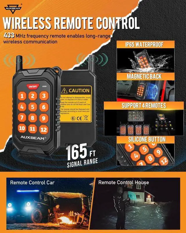 165FT Long Range 433MHz Wireless Remote Control: 12 gang switch panel comes with a pre-paired 433MHz wireless remote control that can operate from up to 165 feet away. The remote, featuring magnets on the back and antenna base, can easily attach to magnetic surfaces. The antenna also includes double-sided adhesive tape for versatile installation.