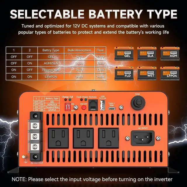 Excellent Performance The 2500 Watt Sump Pump Backup Battery System is a professional backup system in case of a power outage, featuring pure sine wave output, 2500 watts of powerful power output, 25A operating current and 3 AC outputs to support multiple sump pumps at the same time. Even in the event of a rainy day power outage, it will automatically switch to battery power to keep your sump pumps working. Trust to keep your basement safe and dry around the clock! (Note: This power converter works with batteries, which must be purchased separately).