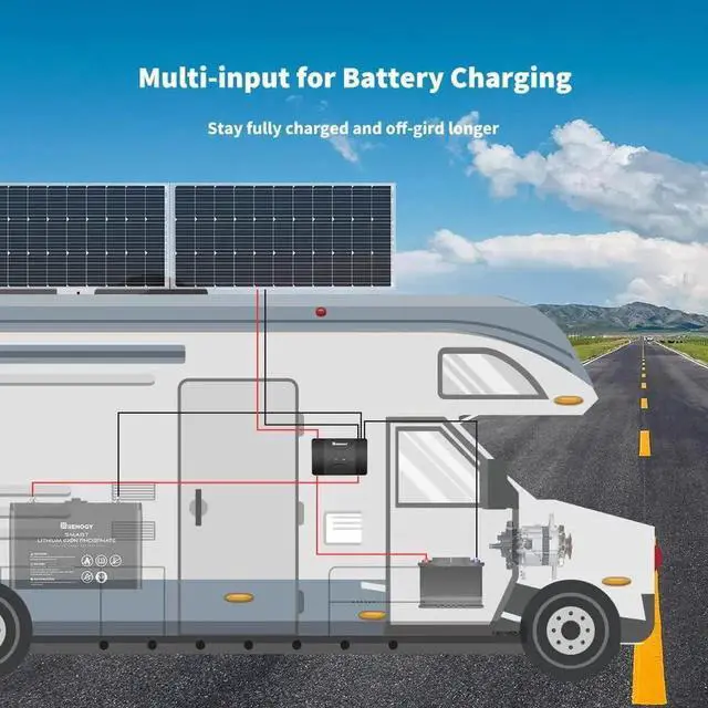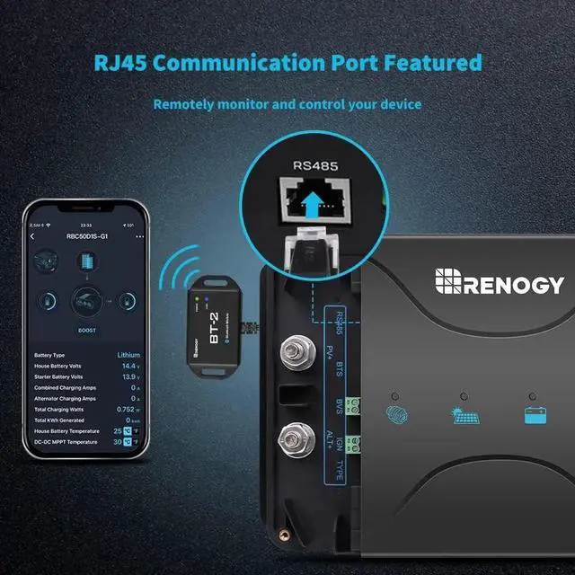Innovative MPPT Design, up to 99% efficiency and Operate with Battery when its 0 Volt: Renogy MPPT charge controller maximizes the solar power and is with a high tracking efficiency of up to 99% and peak conversion efficiency up to 97%. It is the great charging solution even in cloudy environments where the max power point of the solar panels will fluctuate all day. Even when the battery is dead (at 0 volt), the controller can activate it with small current and bring it to life.Extremely Protection: 3-phase charging profile (Bulk, Boost, and Float) ensures your service battery will be accurately full charged. With Protections of battery isolation, over-voltage protection, battery temperature protection, over-current protection, overheat protection, reverse current protection, solar panel and alternator reverse polarity protection. Featured with remote temperature sensor port, the controller can measure the battery temperature for accurate temperature compensation.
