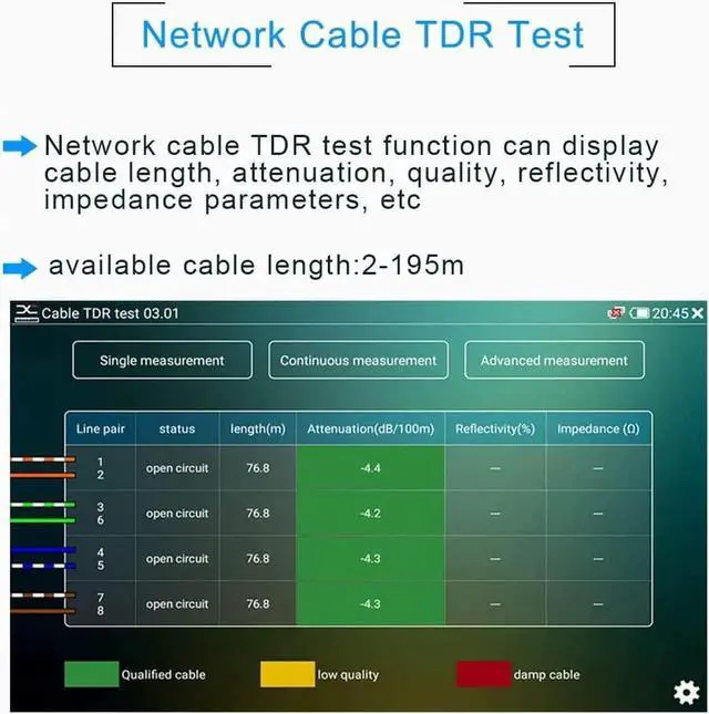 Support H264/H265/H265+encoding camera test, resolution up to 6K network camera test.falseHDMI Input&Output,1080PfalseCoaxial HD camera test: 8MP TVI/CVI/AHD camera,CVBS camera test and PTZ controlfalse